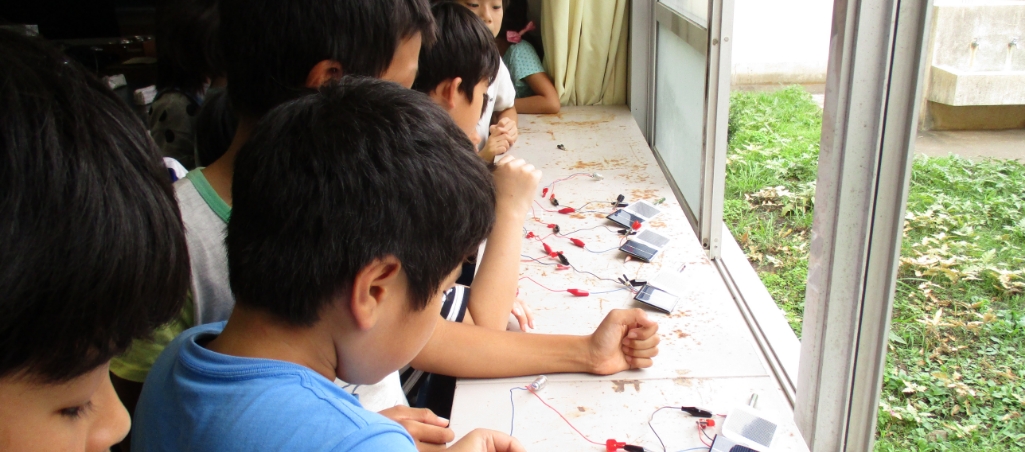 小学校からの要請に応じ、次世代を担うこどもたちが、再生可能エネルギーやエネルギーと環境保全の関係などを理解できる講座を出張開催しています。川崎市立宮内小学校では、寺子屋事業の一環として夏休みを活用して実施しています。